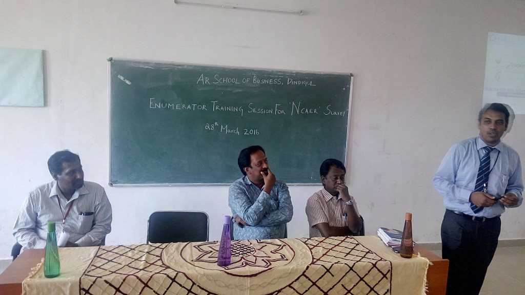 AR School of Business organised a training session to conduct survey for "National Council for Applied Economic Research (NCAER)". Mr. M. Abusalih, Sr. Manager - Training & Development (Star Health Insurance) delived an effective session.