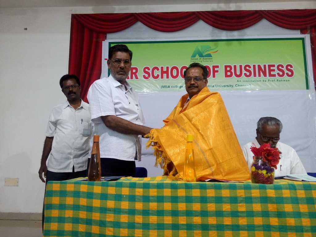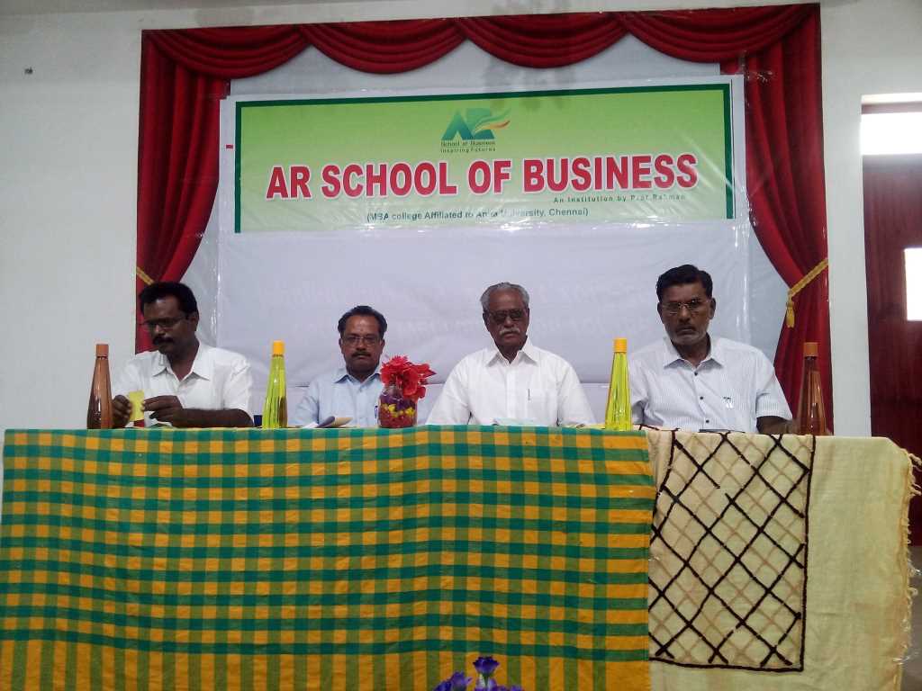 AR School of Business organised a guest lecture program on Basic law for business practices. The session was conducted by District Judge Mr.K.Dhanasekaran.